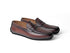 "Penny Driving Moccasins" is brown patina calf leather with a burnished look in super comfortable hand stitched rubber sole. Make to order in any colour of your choice.